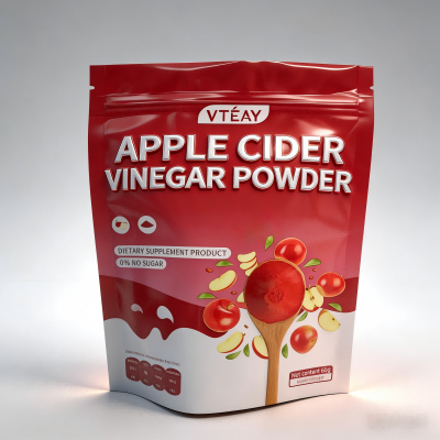 Vrečka je izdelana iz materiala PET/aluminij/PE za živila in zagotavlja, da jabolčni kis v prahu ostane svež in močan dolgo časa. Odlična pregrada materiala za kisik, odpornost proti vlagi in lastnosti blokiranja svetlobe ščitijo aktivne sestavine in ohranjajo kakovost izdelka.